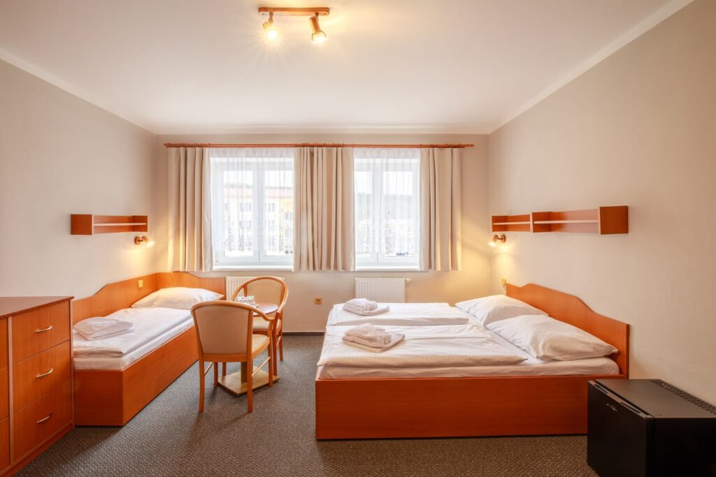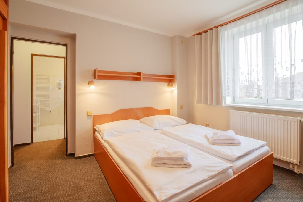 Komfortní pokoj s oddělenými lůžky, vhodný i pro osoby na služebních cestách, možnost přistýlky za 400 Kč/noc.
